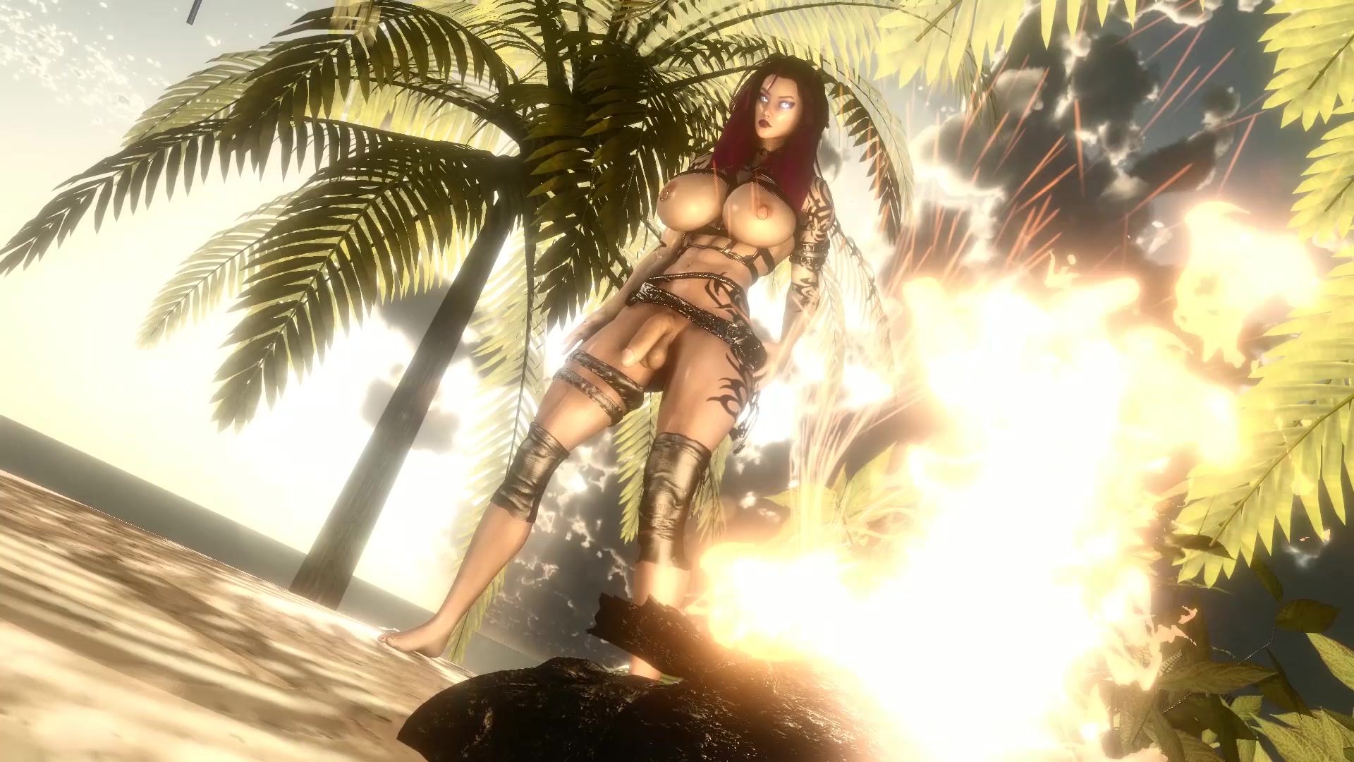 Giantess futa lady with big tits facefuck girl on the beach POV
