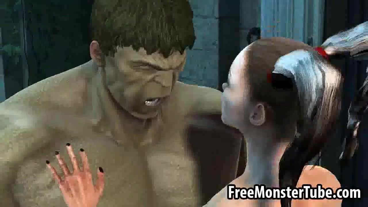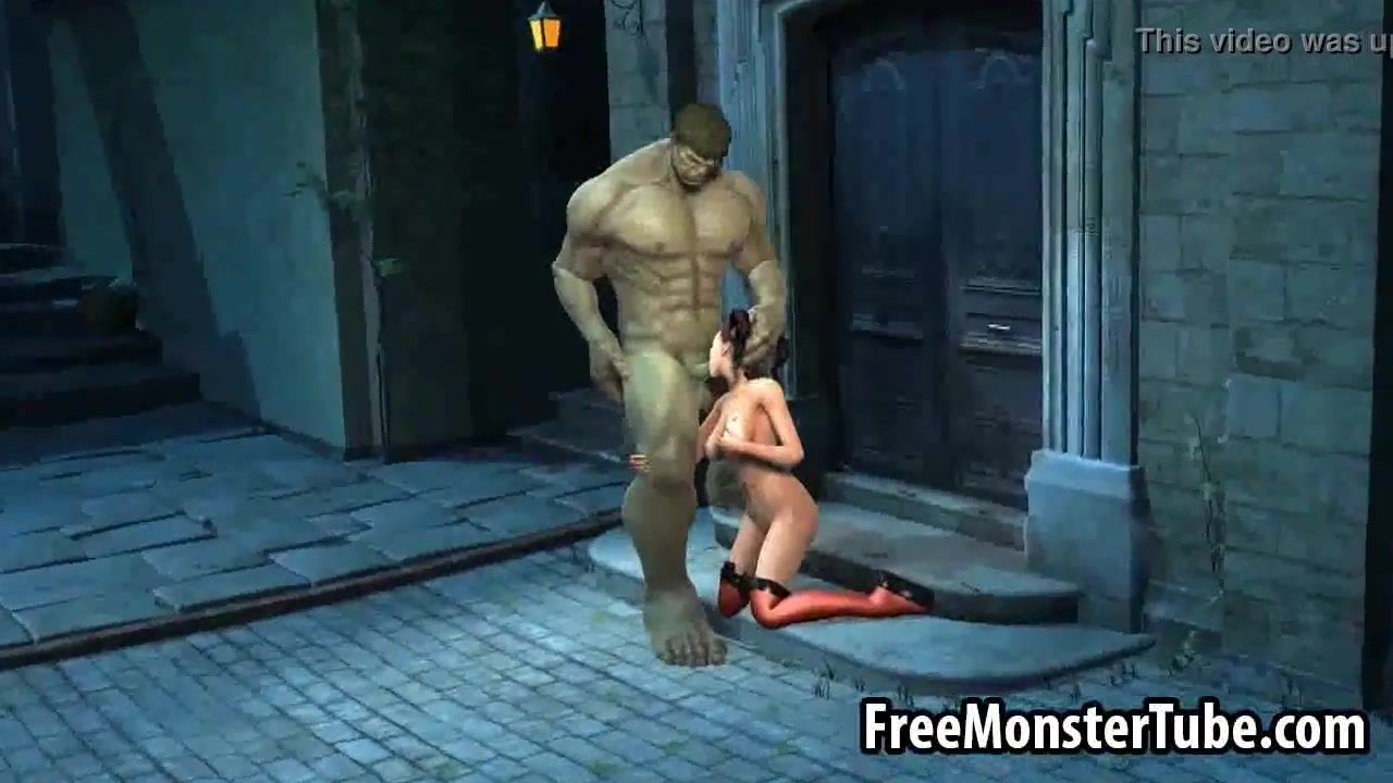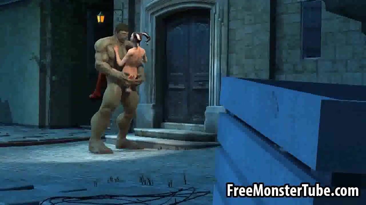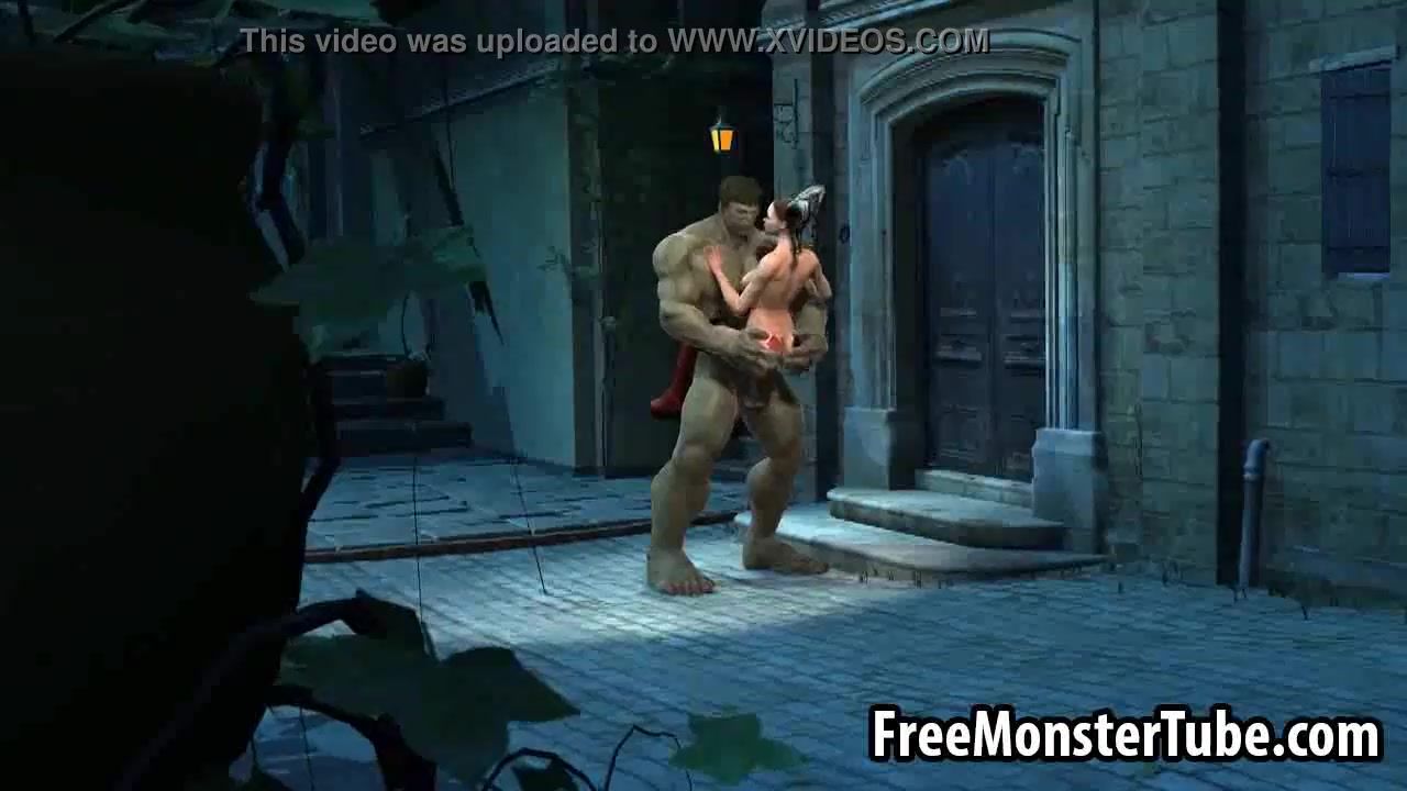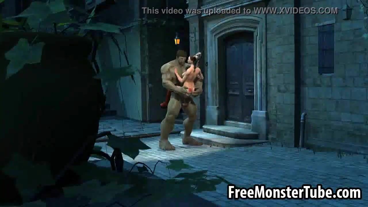 Huge orc fucks sexy elven girl with big dick in cool 3D cartoon
