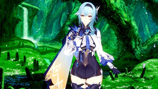 The blue-haired Eula is definitely familiar to you if you play the video game Genshin Impact. The girl is the dream of many. Look at how hot she has sex with a young guy in the bedroom and gets cum in her pussy.