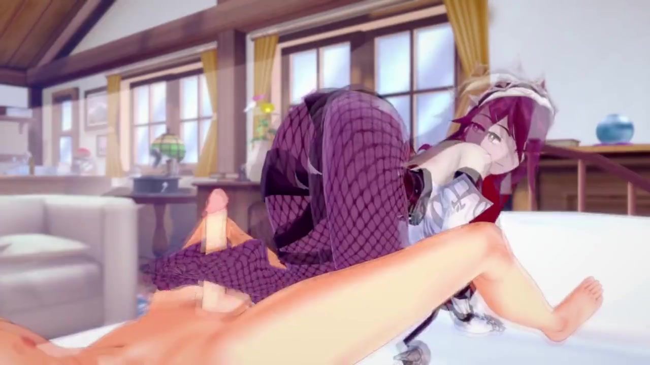 Purple bitch Rosaria is familiar to all fans of the video game Genshin Impact. The girl is the dream of many! In this porn cartoon, she enjoys sex with a guy. The beauty jerks off the penis with her feet, makes a blowjob and fucks until her pussy is filled with sperm.