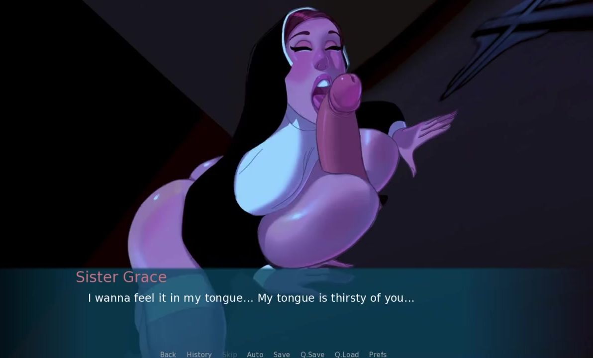 The holiest nuns sin. Don't you believe it? Then watch this funny porn cartoon. A charming nun completely forgets about the Bible, sucks a dick and fucks dirty in church. She's not ashamed!