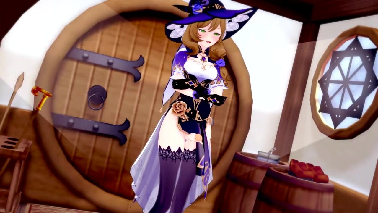 Futanari witch Lisa fucks blonde Elaina in hot hentai porn Genshin Impact
