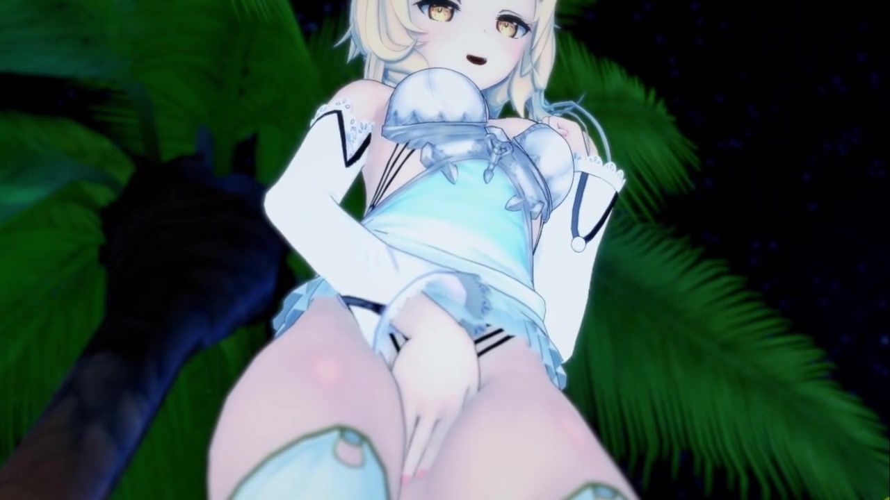 Cute blonde Lumin from the computer game Genshin Impact found herself alone on the beach. There was no one around, so the girl undressed and began to masturbate. The caresses of the clitoris brought her to a violent orgasm.