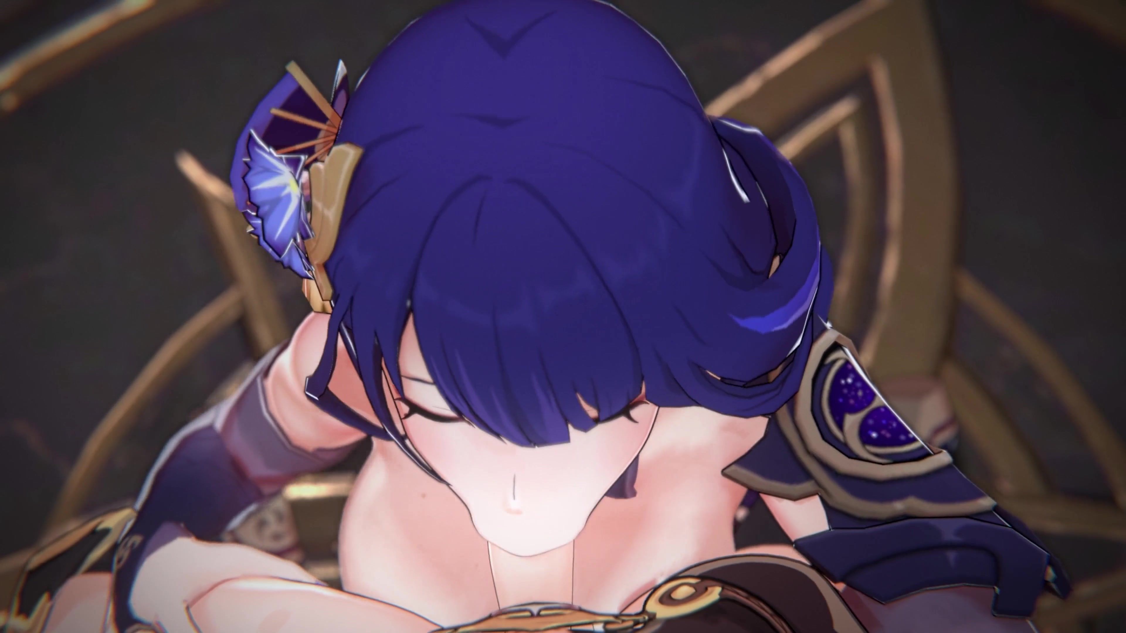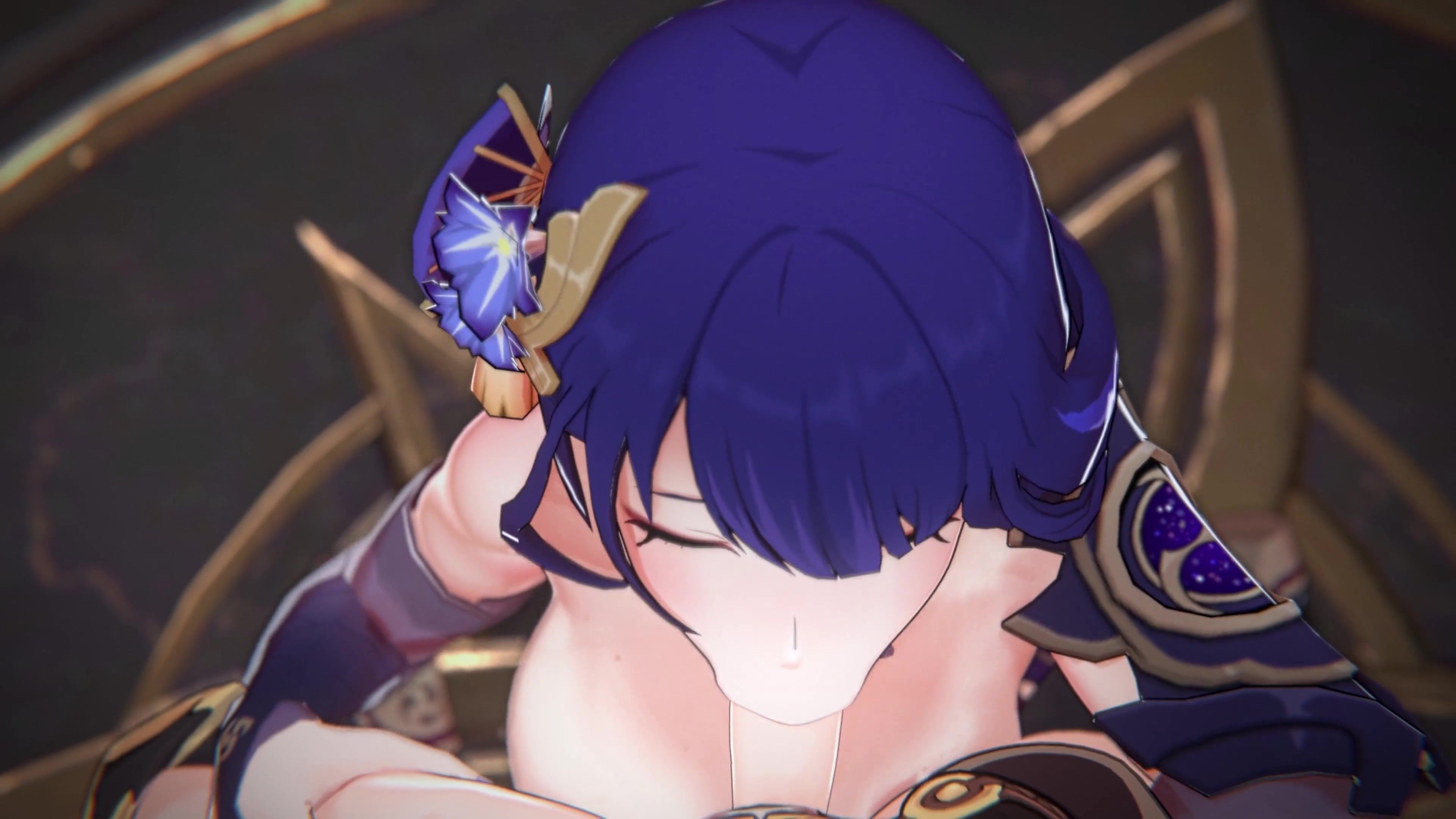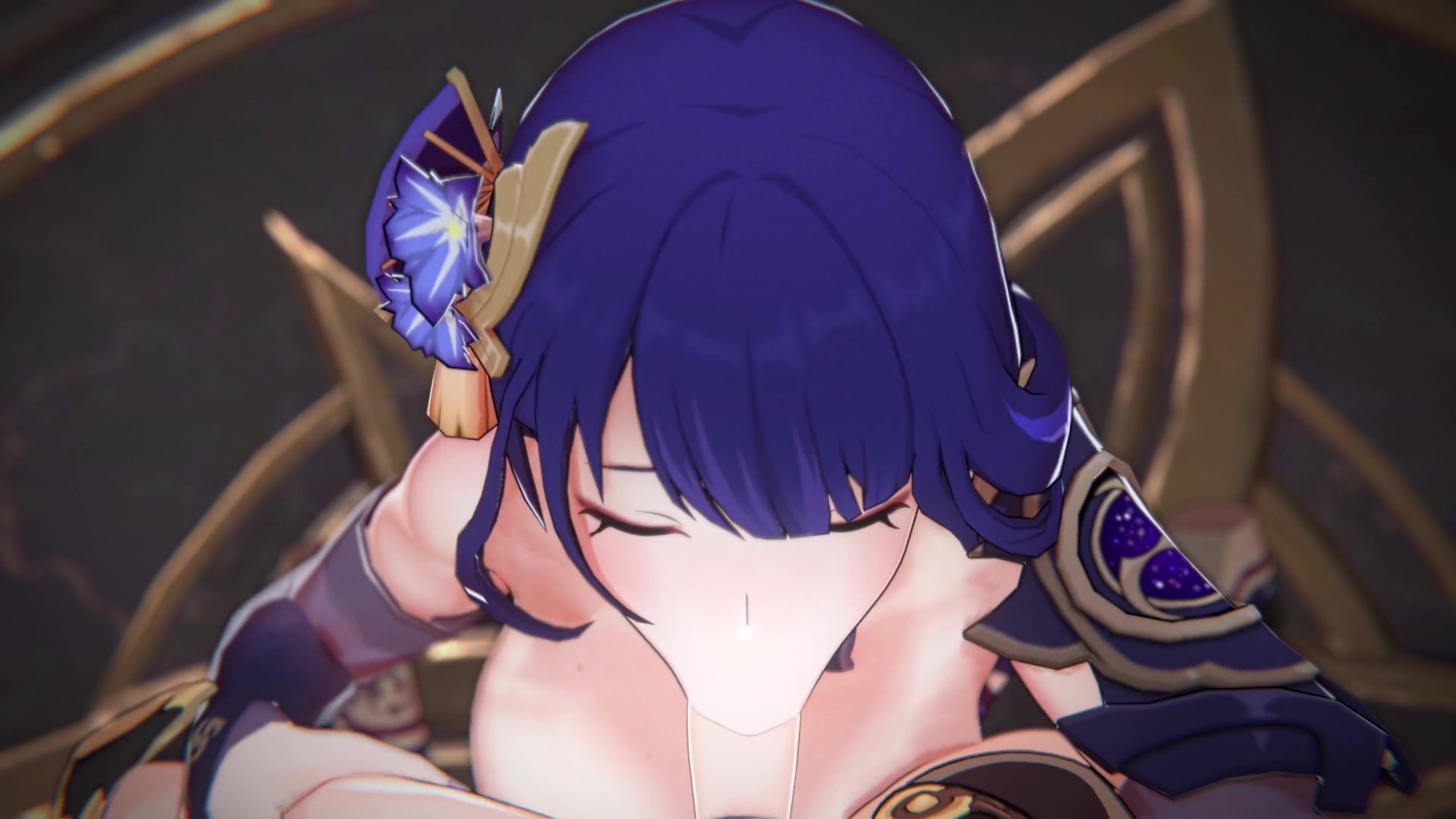 Hot blowjob from the blue-haired bitch Raiden from the famous video game Genshin Impact