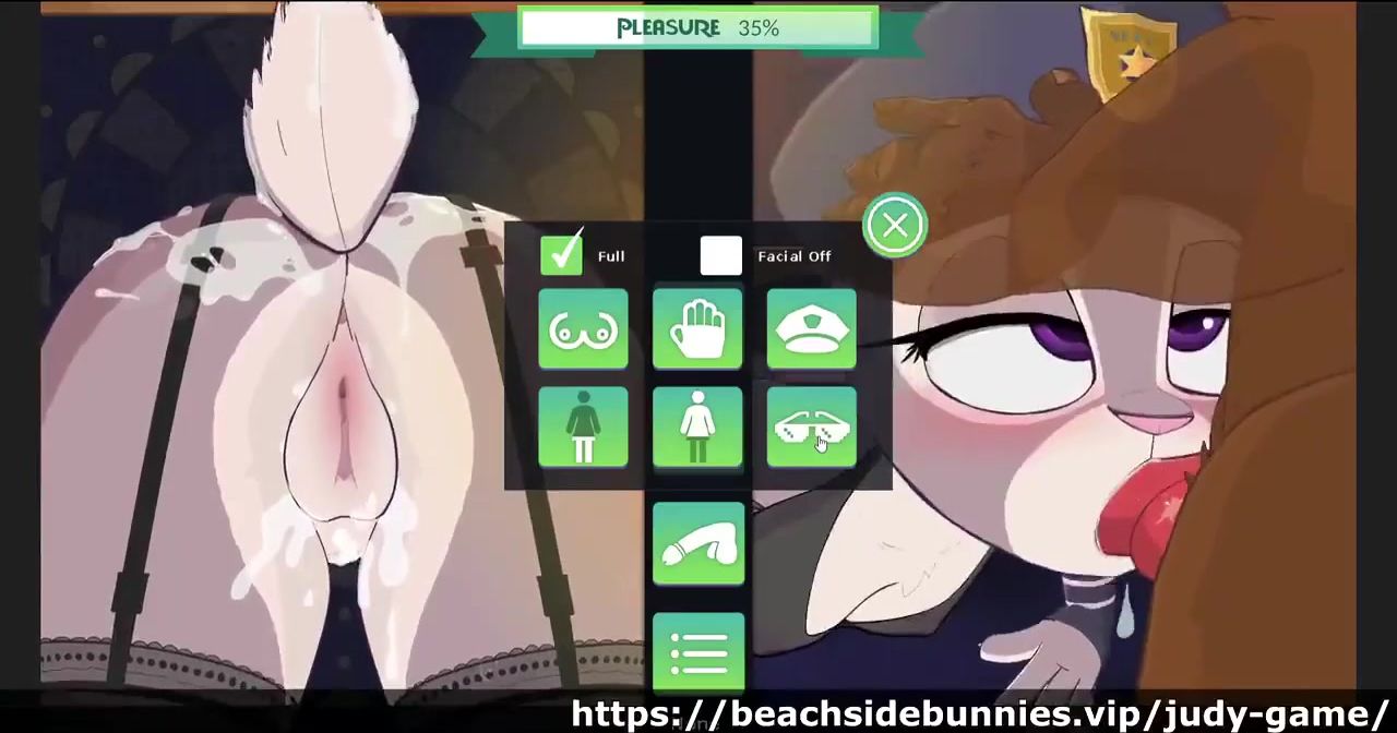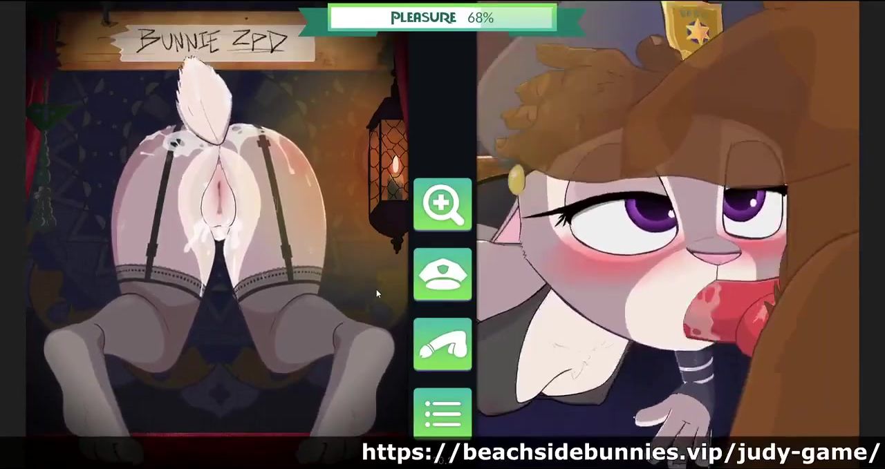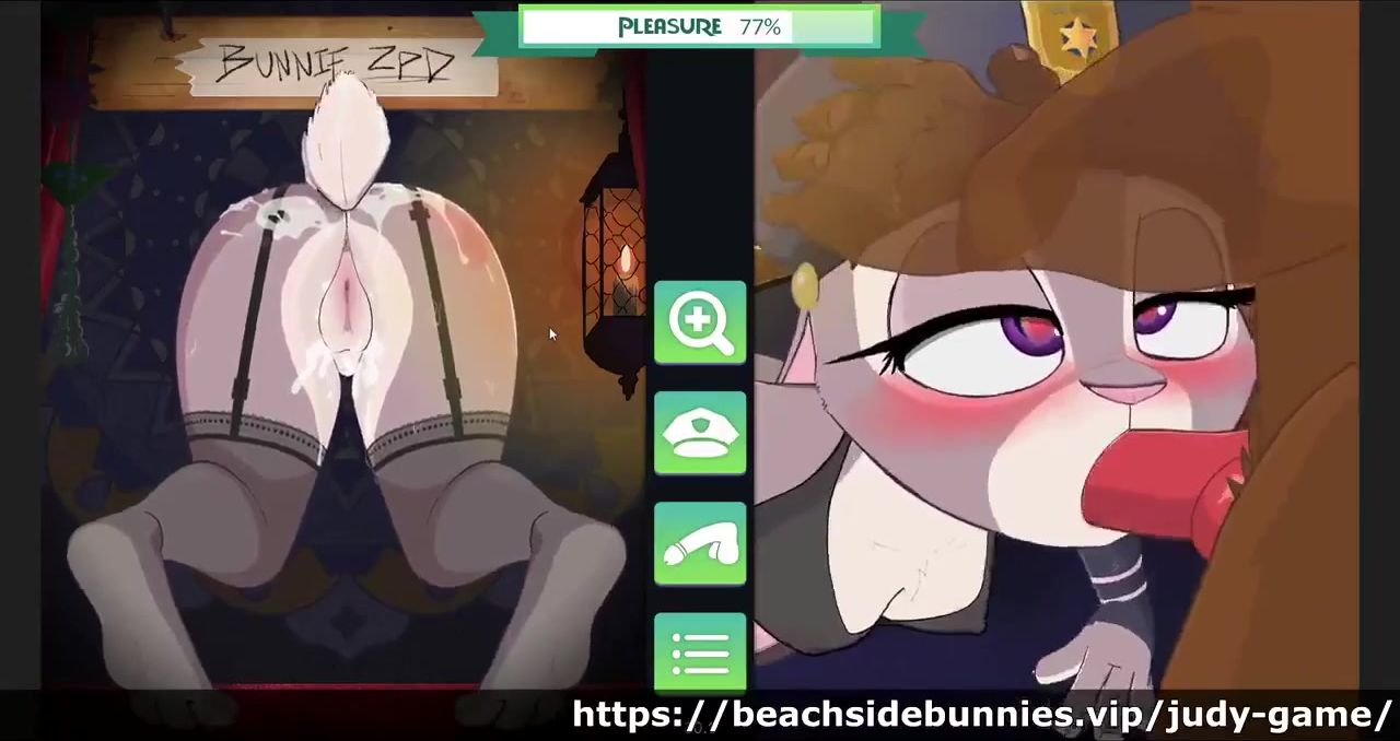 Judy Hops is the main character of a porn flash game in which everyone fucks her. In this episode, the poor thing got into a vice, and two lovers fucked her in her mouth and pussy at the same time.
