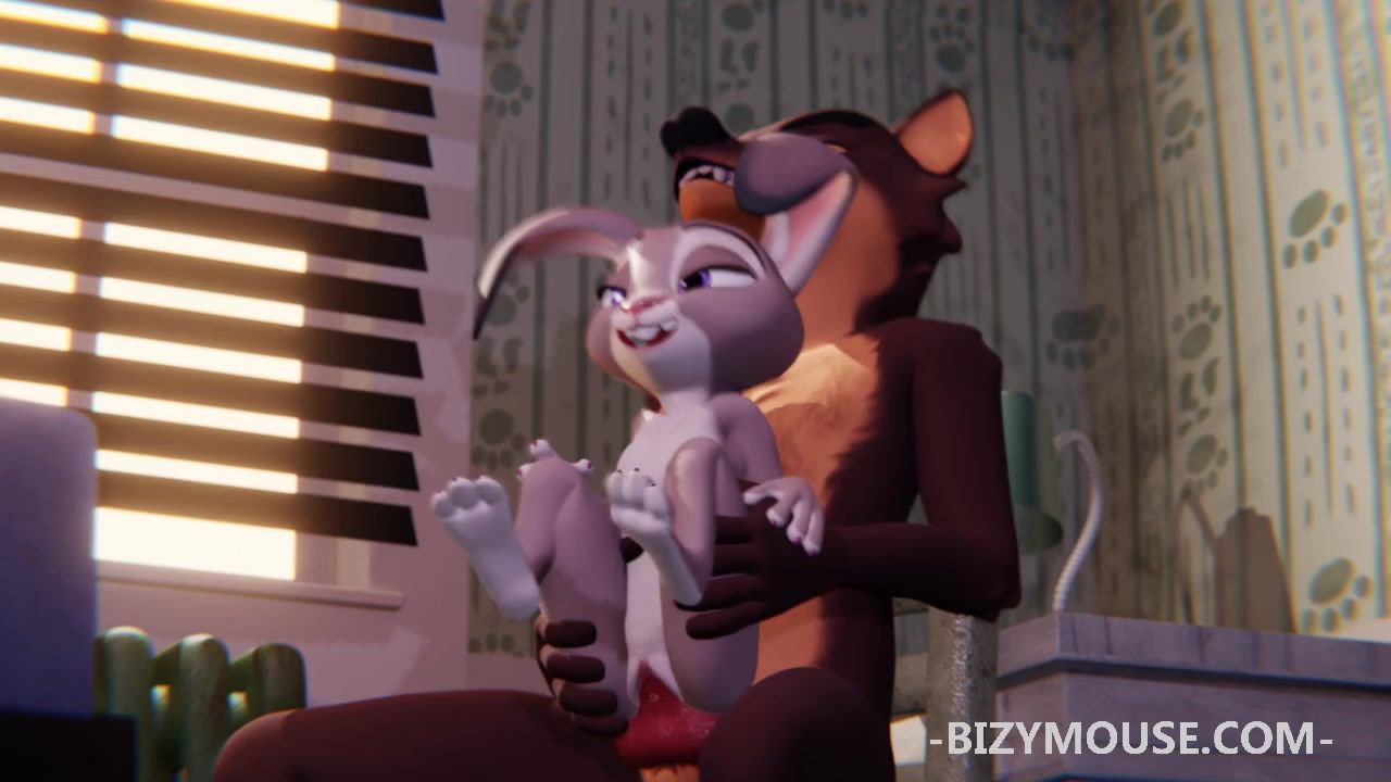Cute Judy Hops from Zveropolis" came to visit her partner Nick Wilde and met his brother. The sly fox invited her to go to the bedroom and there impaled on the penis. While he was fucking the girl, Nick stood outside the door and peeked."