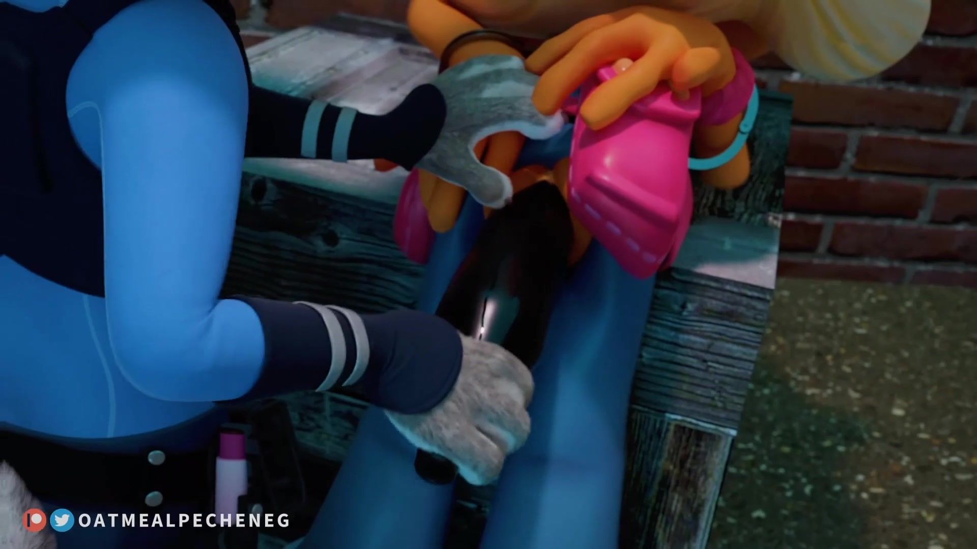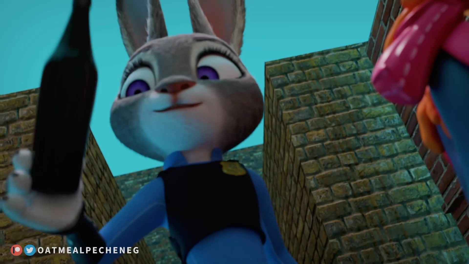 For half a day, police officer Judy Hops chased a sex offender through Zveropolis. When she caught up with her in a dark alley, there was no one nearby. Bunny took the bottle and shoved it into the poor girl's pussy.