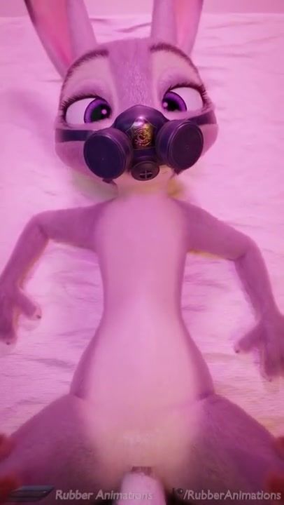 Naked fluffy bunny Judy Hops spread her legs in front of her lover Nick Wild. Having sex with him in the first person, she put on a mask and began to look even more sexy.