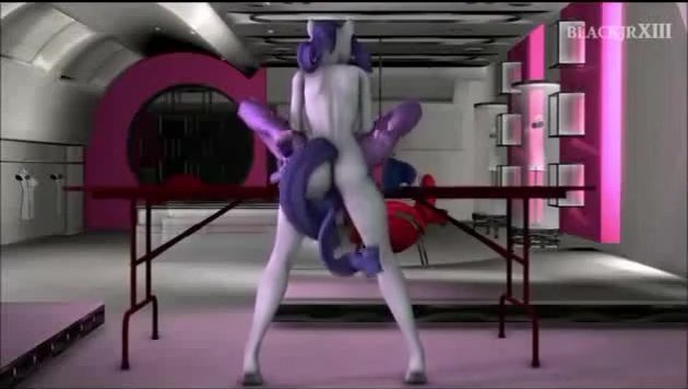 Futanari unicorn Rarity enjoys sex with Twilight Sparkle on the table