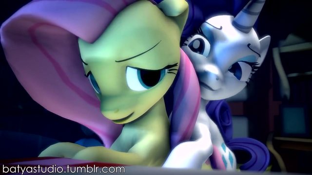Futanari horse Rarity deflowers Fluttershy, porn cartoon My Little Pony