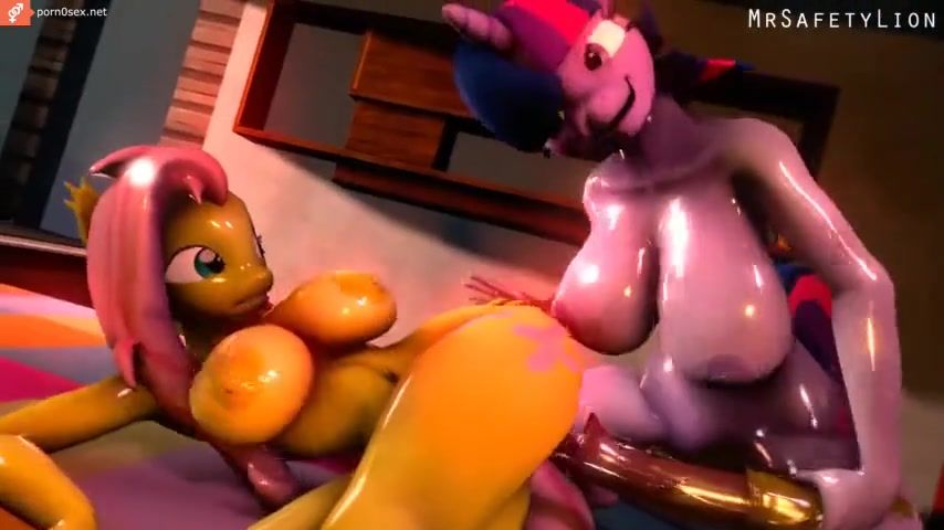 Fluttershy and busty horse girlfriend have sex with dildo, 3D porn