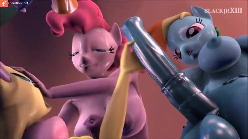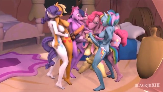 Futanari ponies fuck horse Fluttershy in a crowd at a sex party