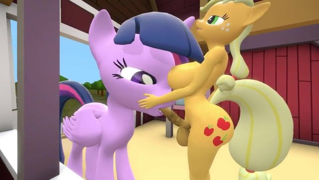 Cartoon sex on a ranch! Twilight Sparkle sucks Applejack's big futanari horse cock
