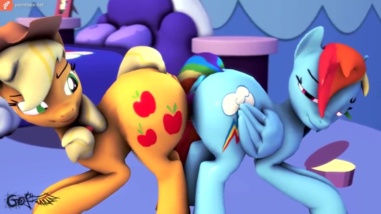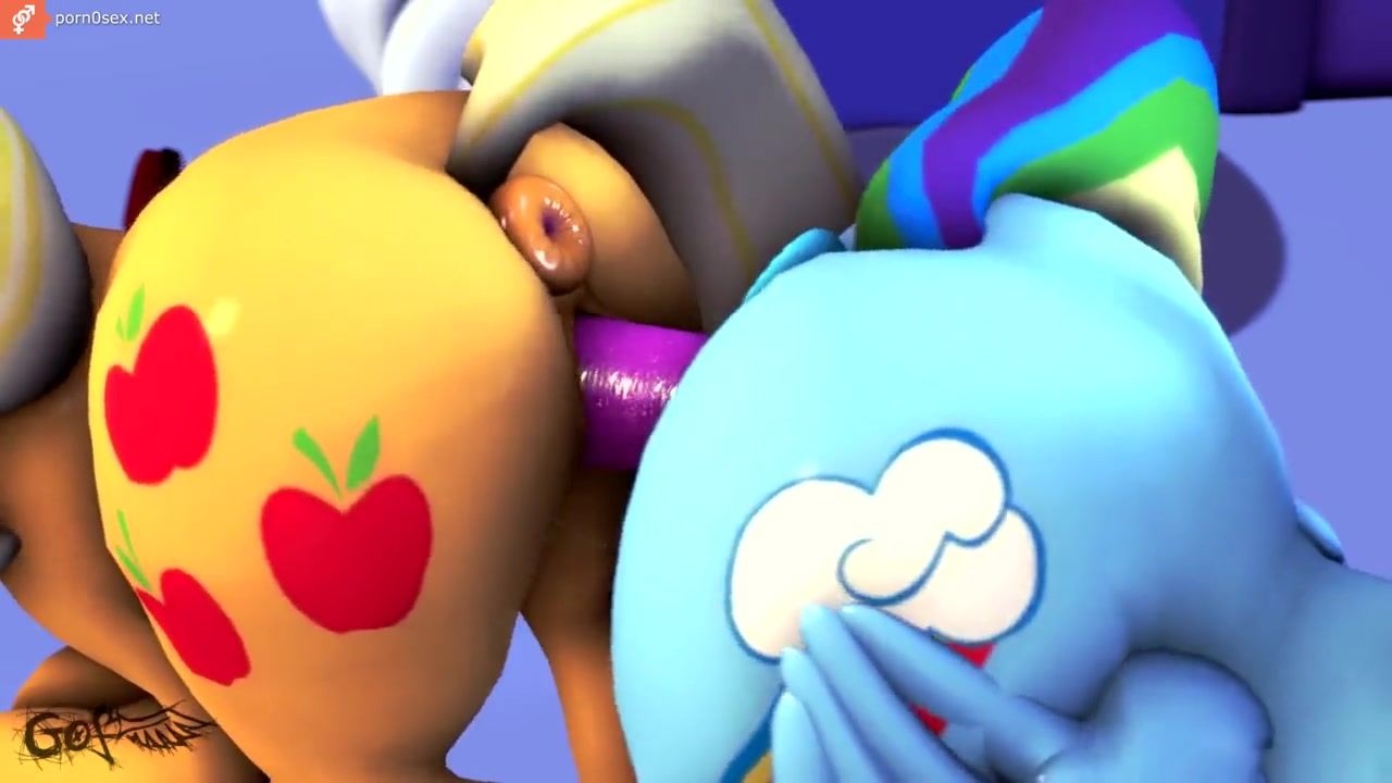 Lesbians Applejack and Twilight Sparkle share one dildo, 3D porn