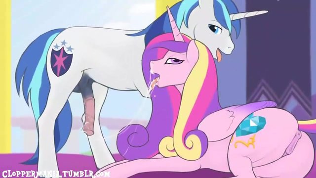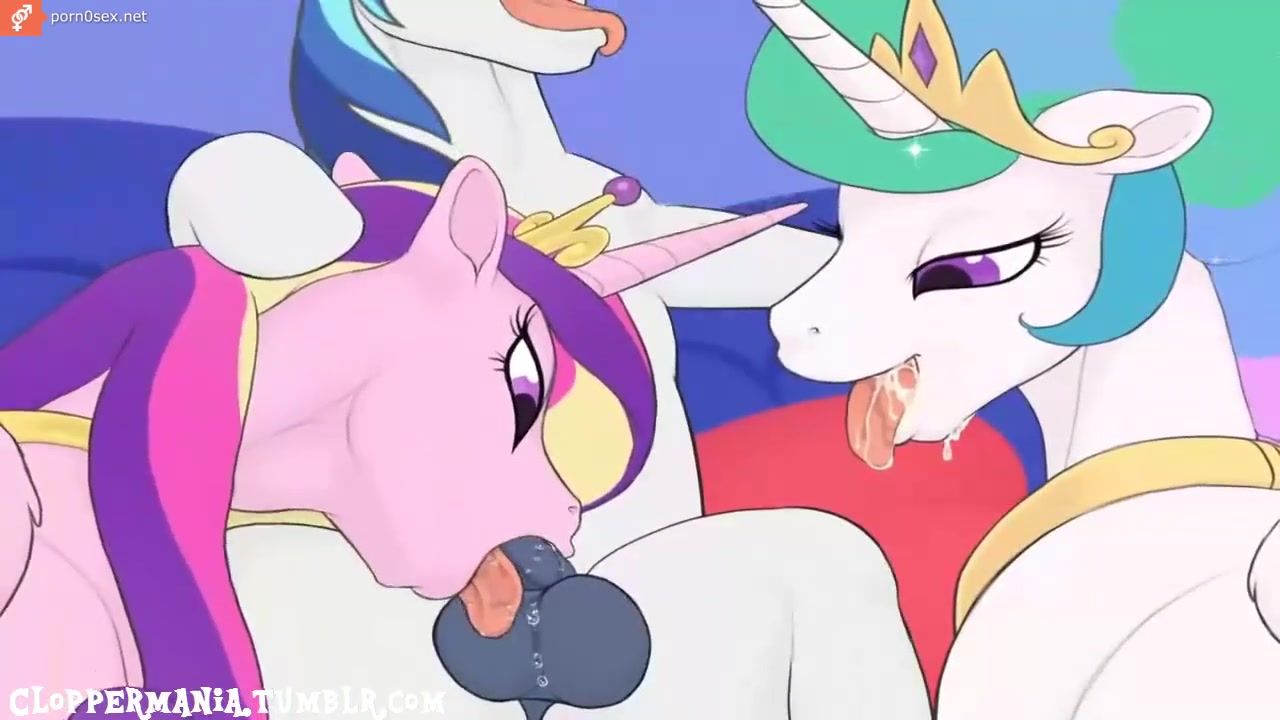 Cute unicorns from the cartoon My Little Pony suck a big horse dick