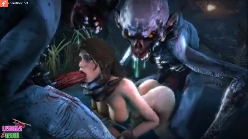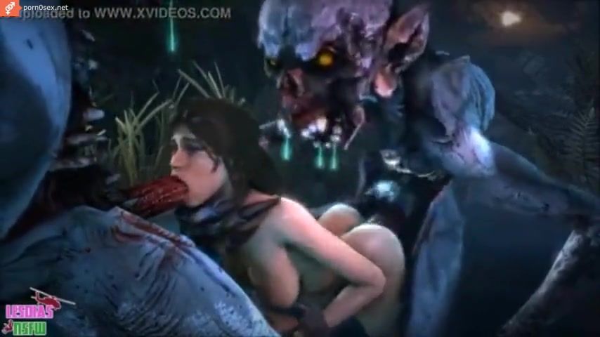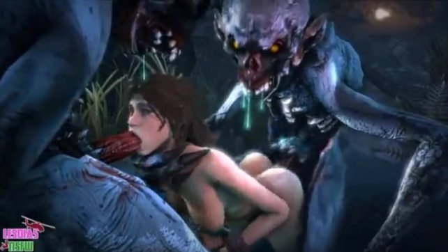 Adventurer Lara Croft was forced to engage in battle with terrible monsters. But these vile creatures were stronger. They quickly stripped the tomb raider and arranged a hard fuck, where they fuck Lara in the mouth and in the pussy at the same time, somewhere in the forest.