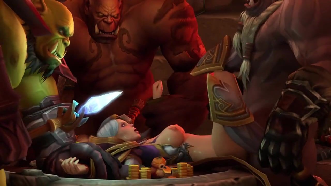 3D porn World of Warcraft! Huge orcs rape a busty blonde