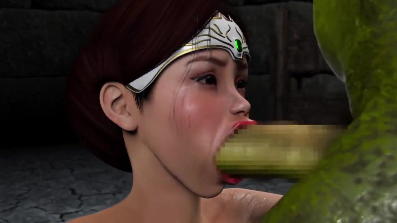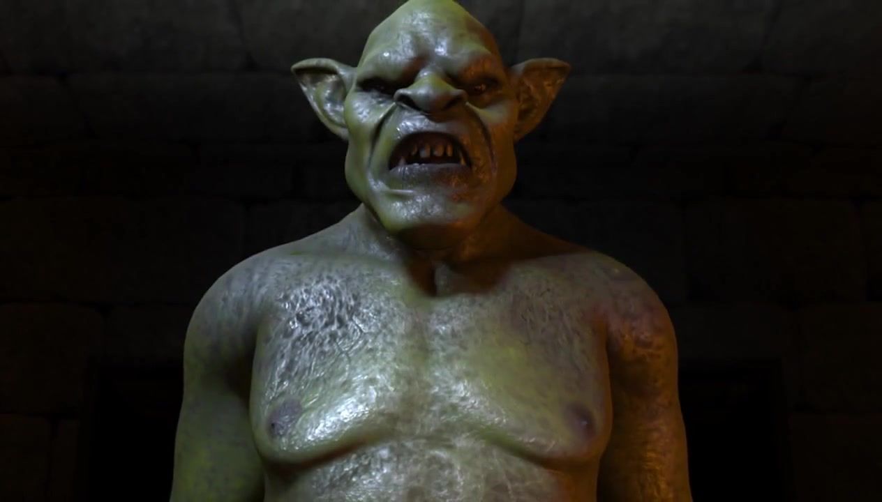 BDSM punishment of a chained brunette in the goblin lair, 3D porn