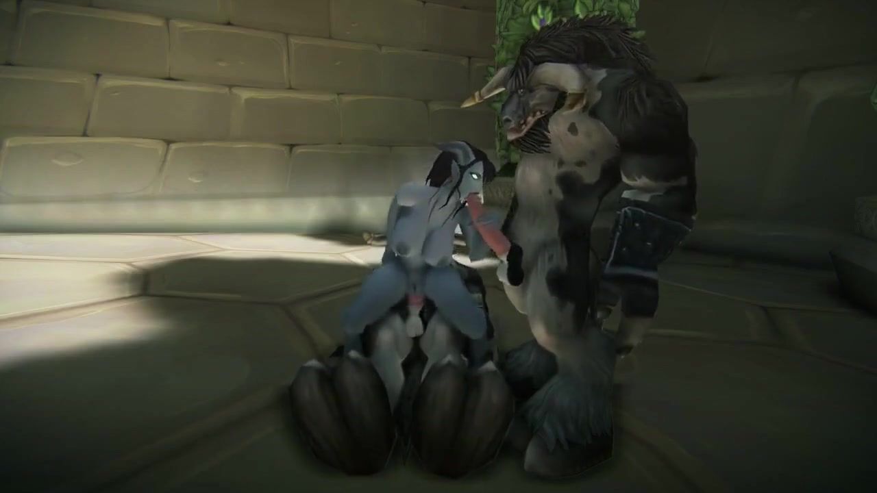 Elven beauty tames the big dicks of two bulls from World of Warcraft
