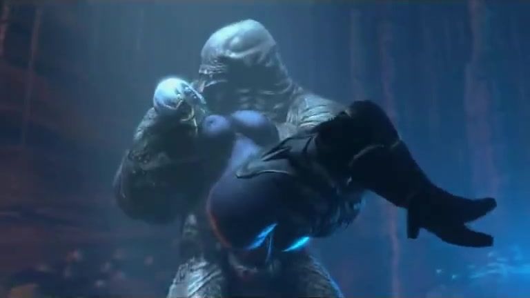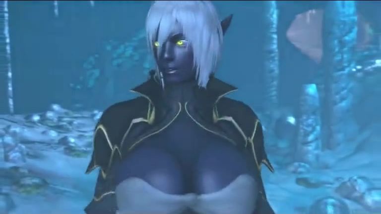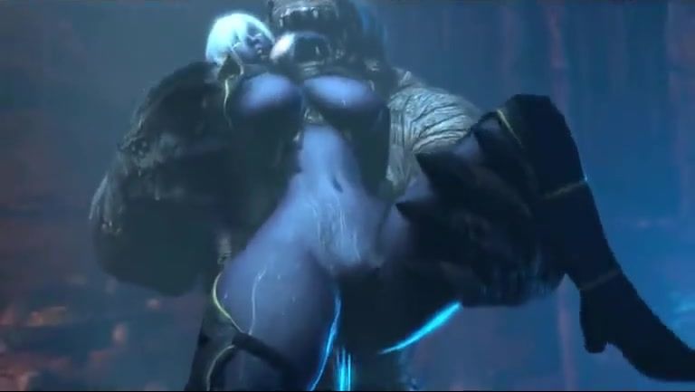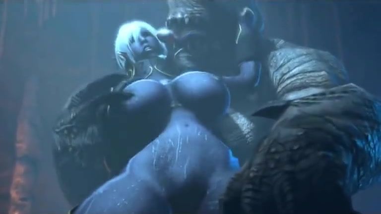 A huge monster rapes blonde Nualia in the porn cartoon World of Warcraft