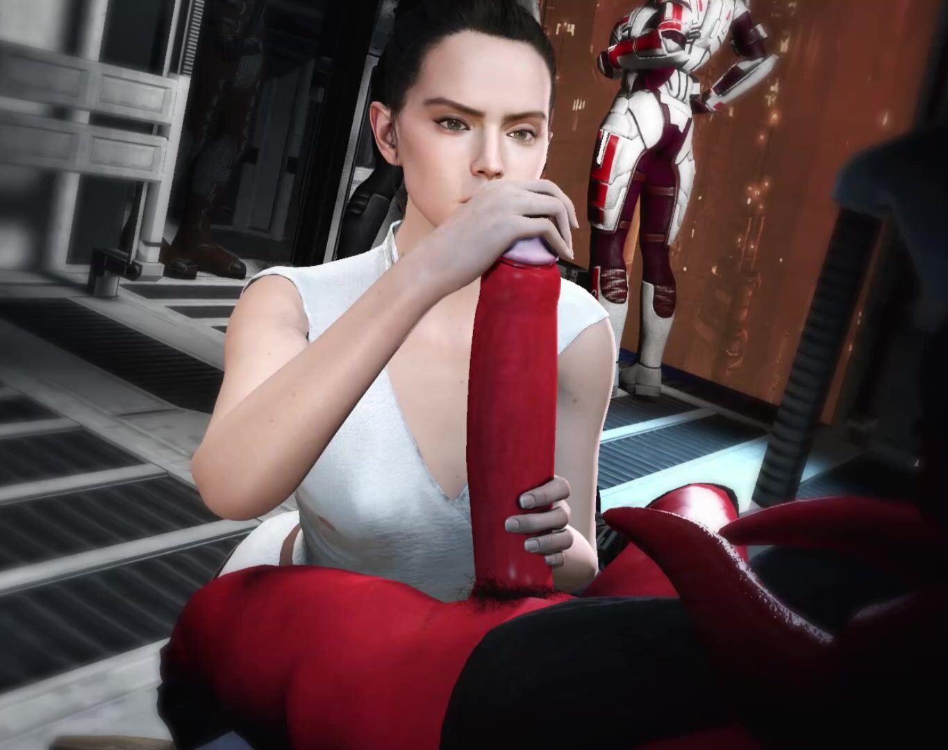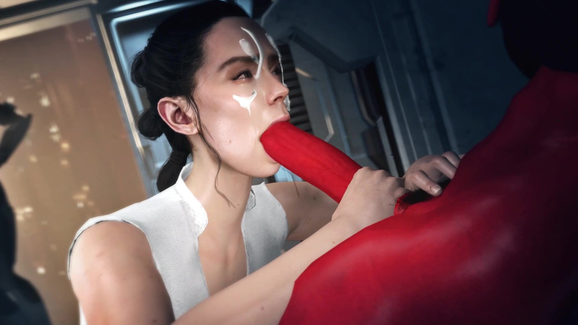 3D Star Wars porn! In this animated scene you'll see the charming girl Rey Palpatine jerking off and sucking Darth Talon's huge futanari cock. The huge penis powerfully spews cum, which lands on the brunette's face.