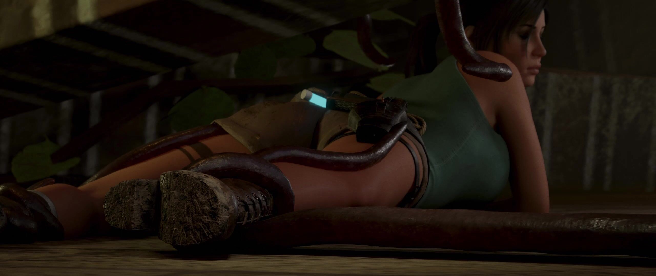 Vulgar tentacles penetrate Lara Croft! 3D Tomb Raider porn