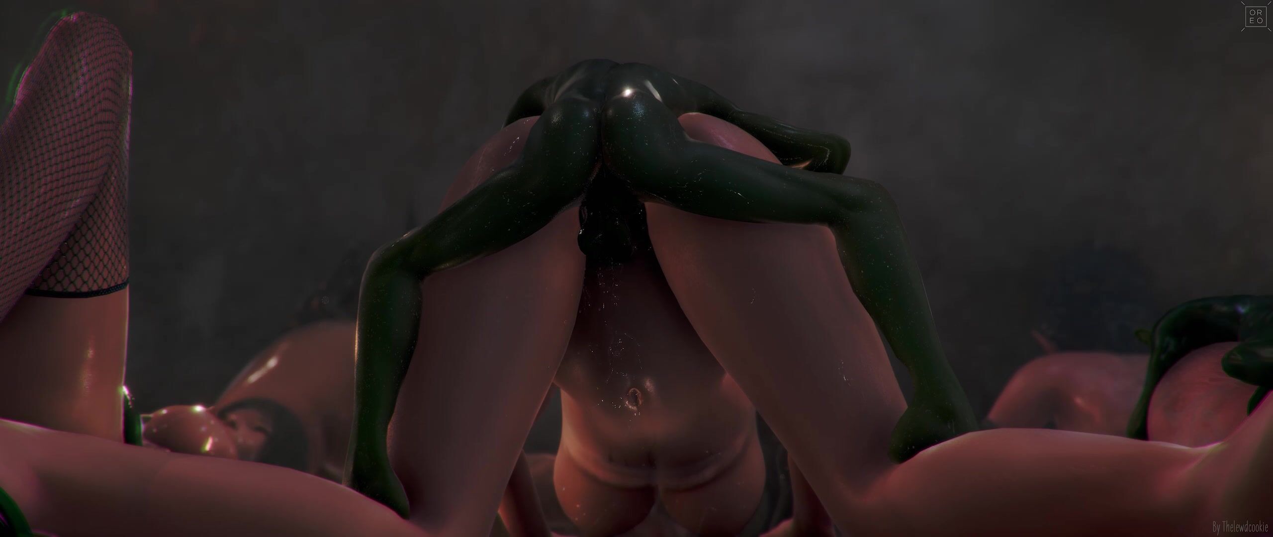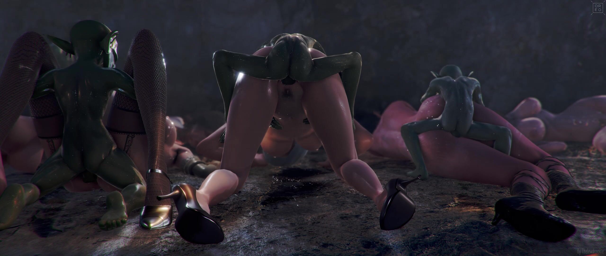 In this epic 3D porn scene you'll see a dirty orgy of goblins and defenseless girls in a cold cave. The filthy monsters fuck the cuties to the point of exhaustion and impregnate them. That's how these green creatures breed!