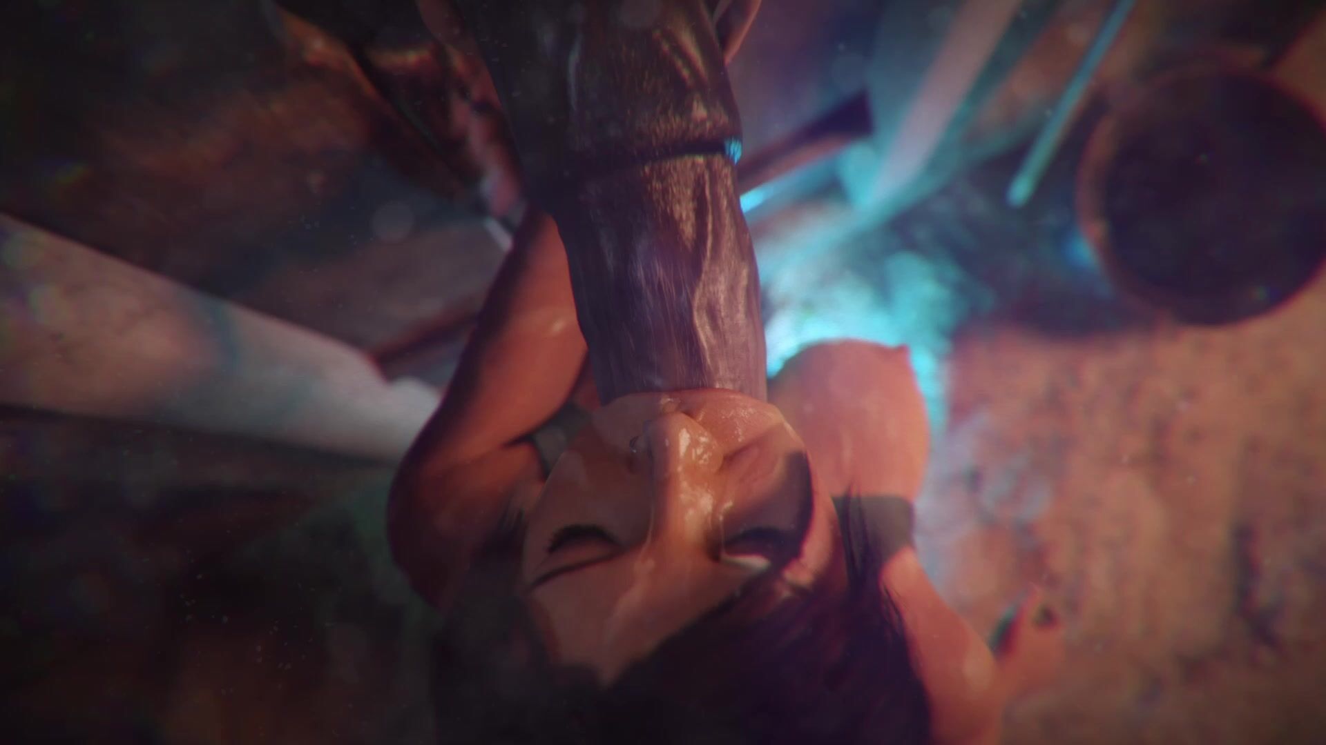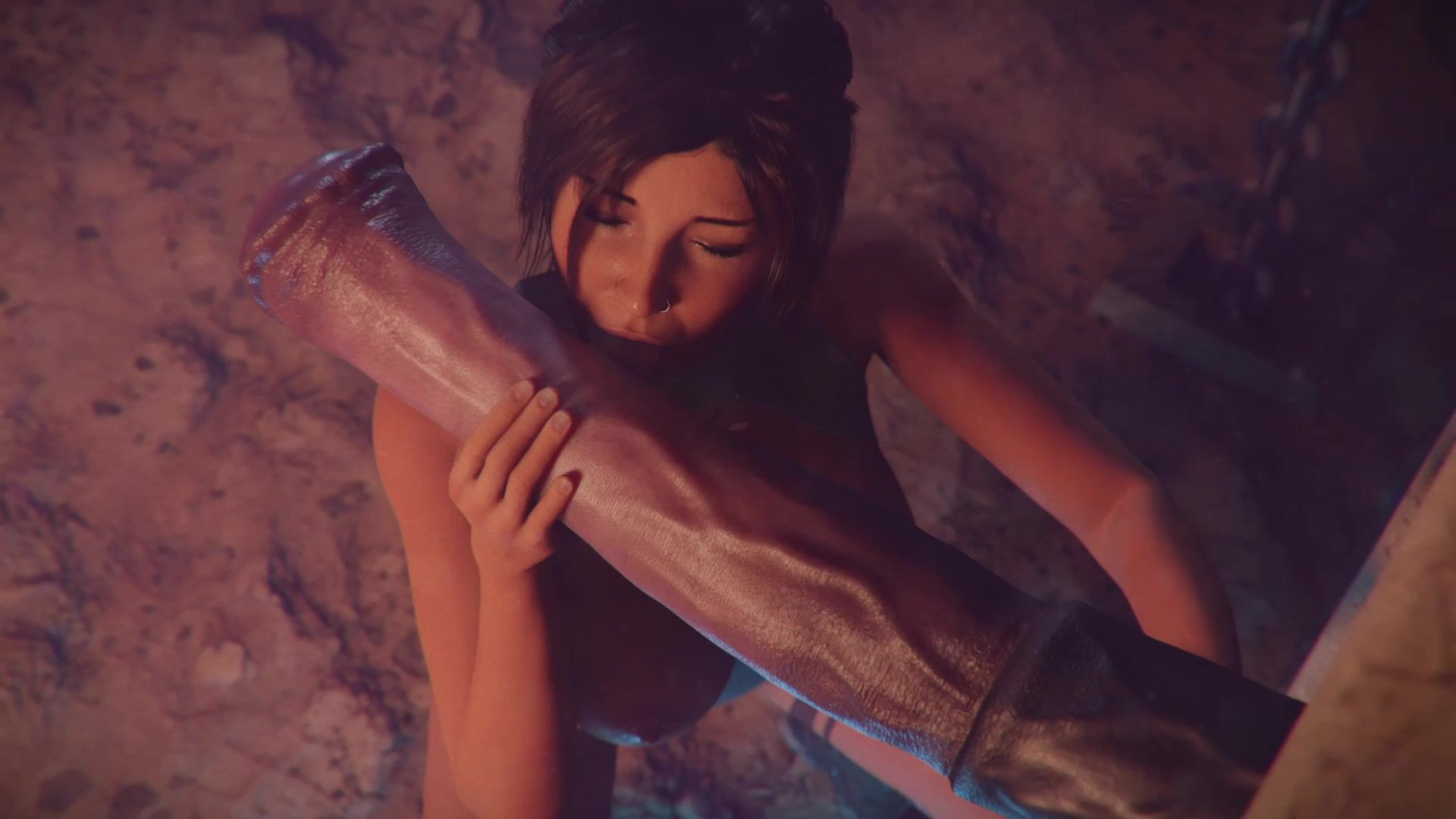 Animated Lara Croft licks and sucks a huge cock