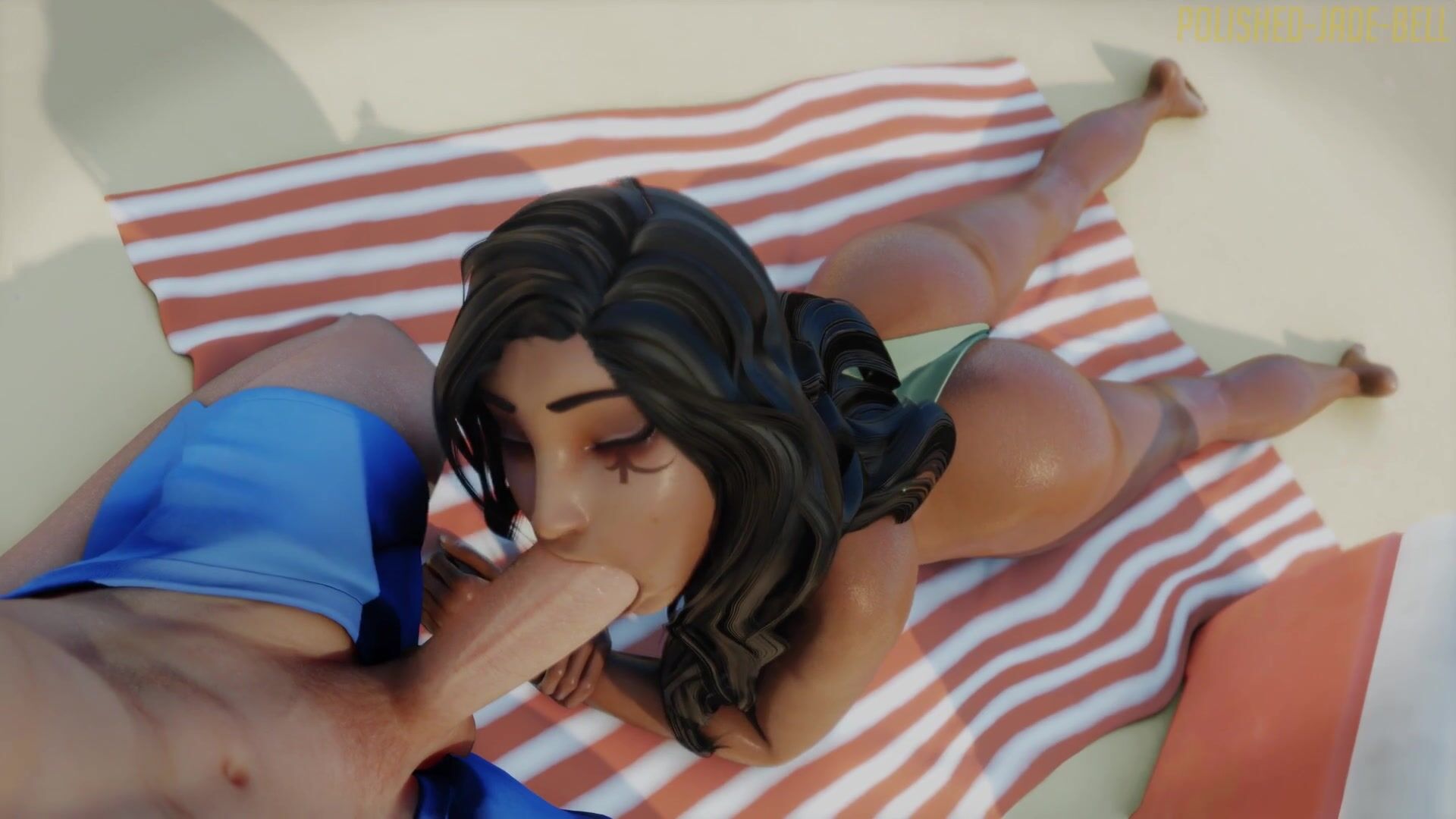 Blowjob on the beach with animated Ana Amari from the Overwatch video game