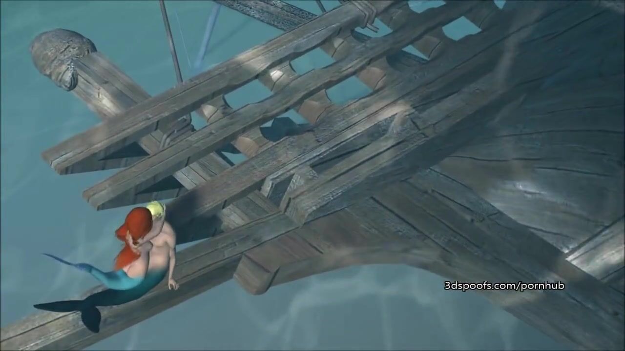Hot sex with the little mermaid Ariel underwater on a broken ship, 3D porn