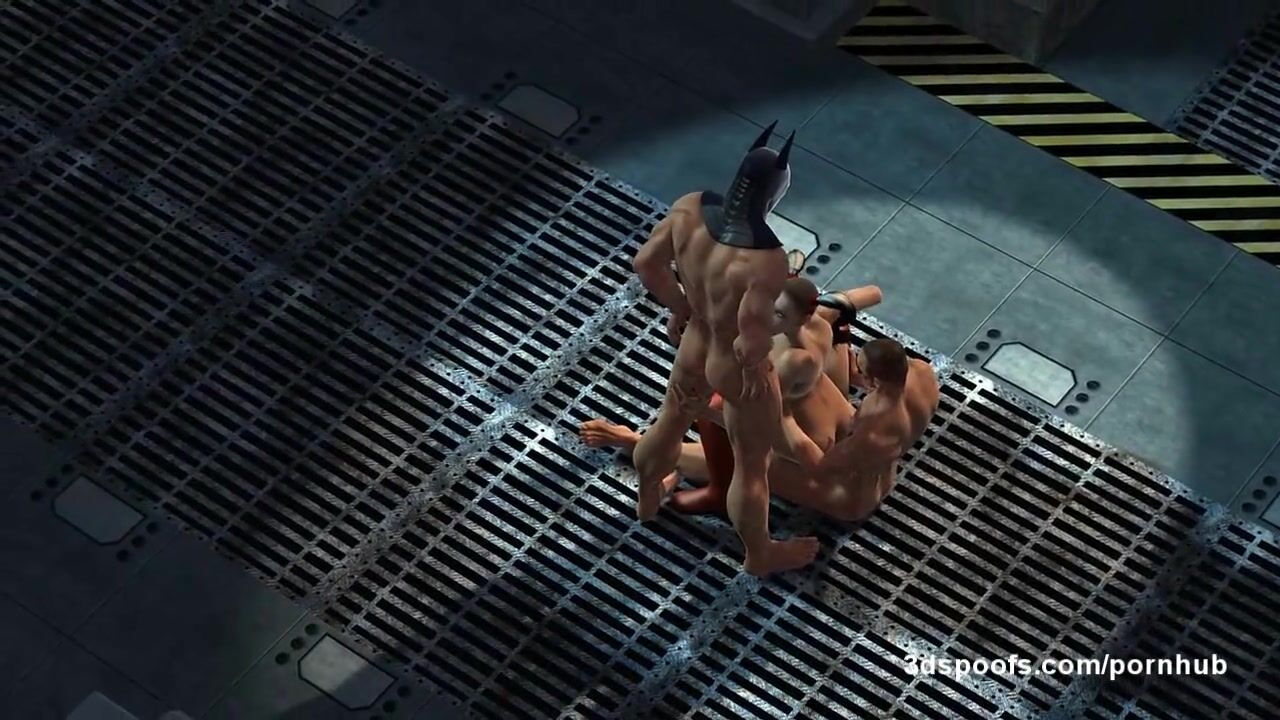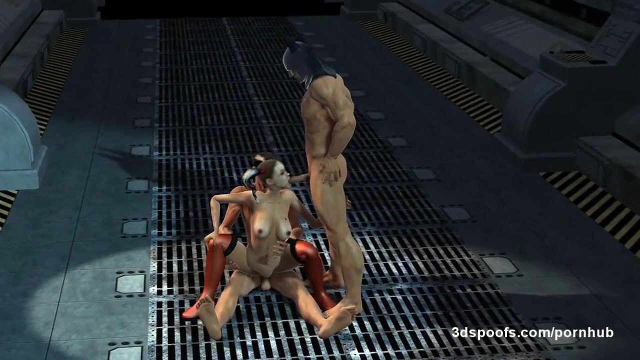Batman and Robin impale slut Harley Quinn on their dicks, porn cartoon