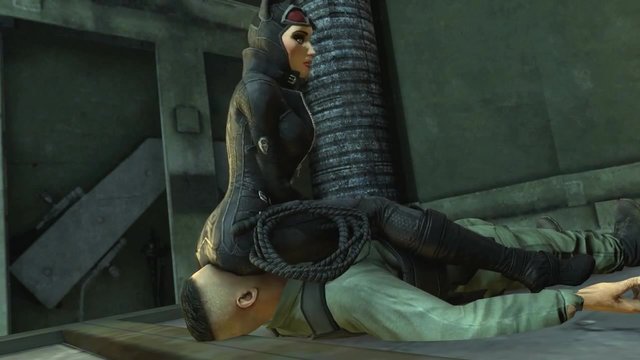 Facesitting with charming Catwoman and defeated soldiers, 3D porn
