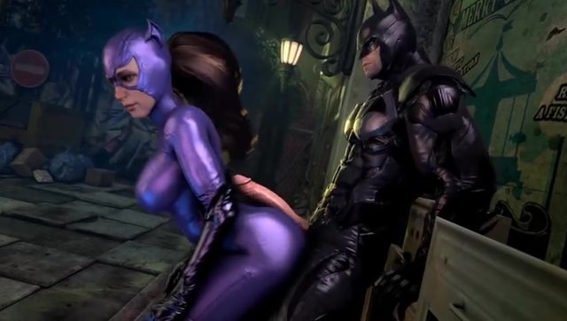 Batman's big dick pours cum on Catwoman's juicy ass, porn cartoon