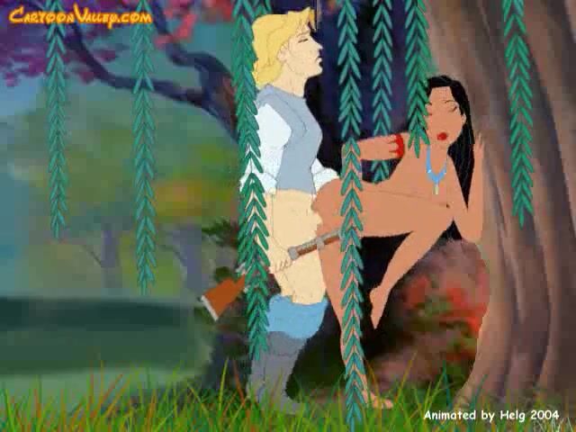 Pocahontas and John Smith enjoy sex in the forest, porn cartoon