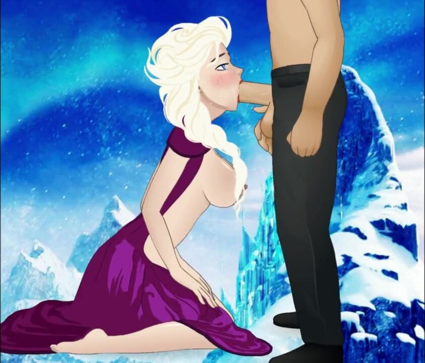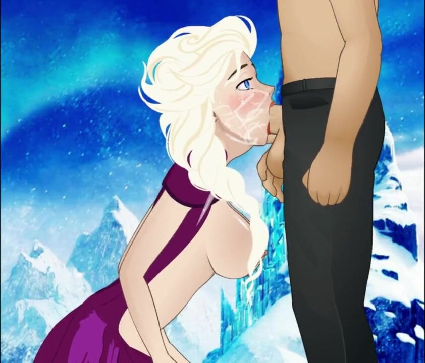 Snow White on her knees, giving a deep blowjob, porn cartoon