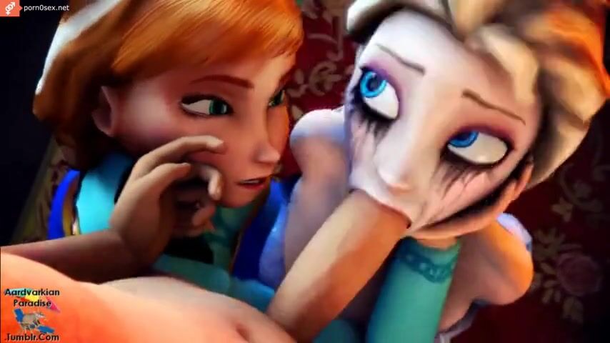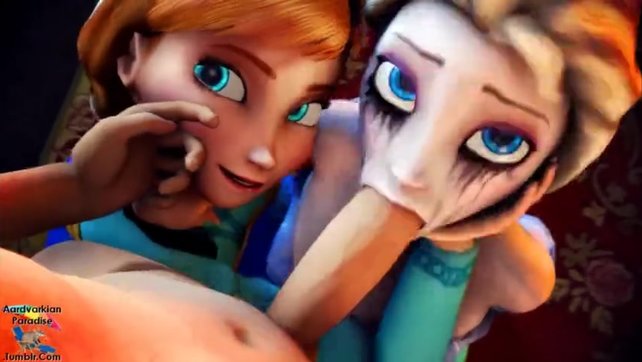 Deep throat blowjob with princesses Elsa and Anna from the cartoon Frozen
