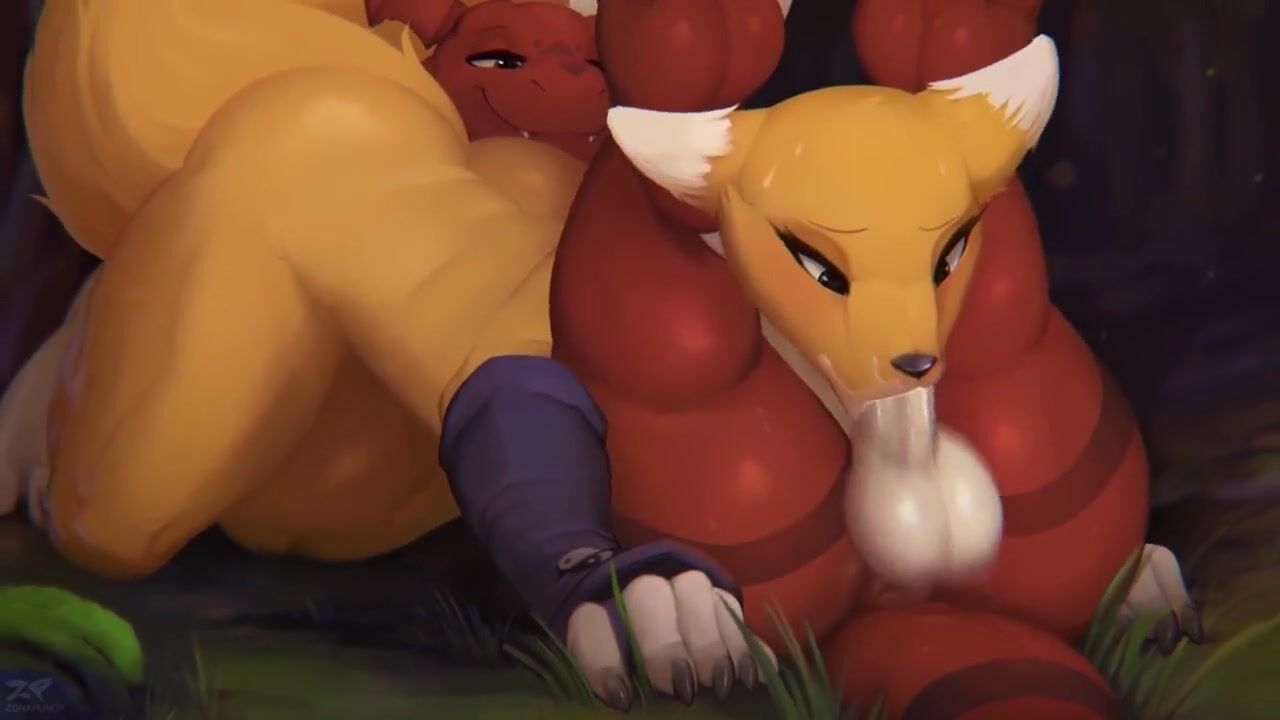 Redhead Furry gives blowjob to baby dragon, hot porn cartoon