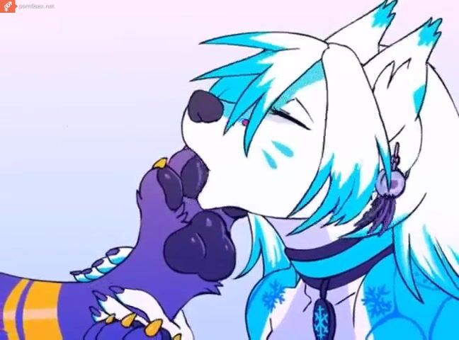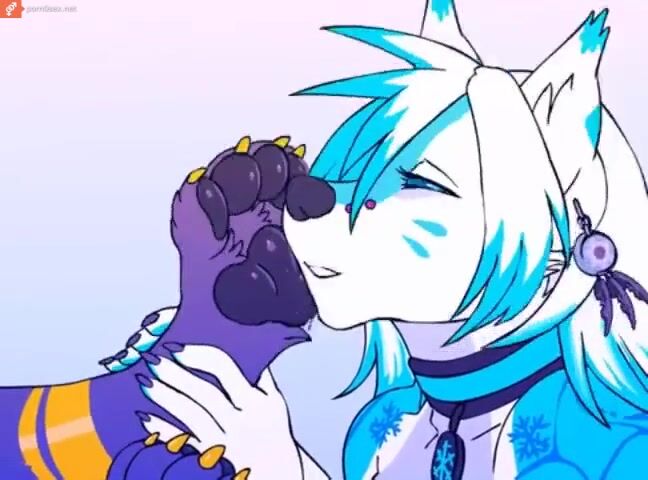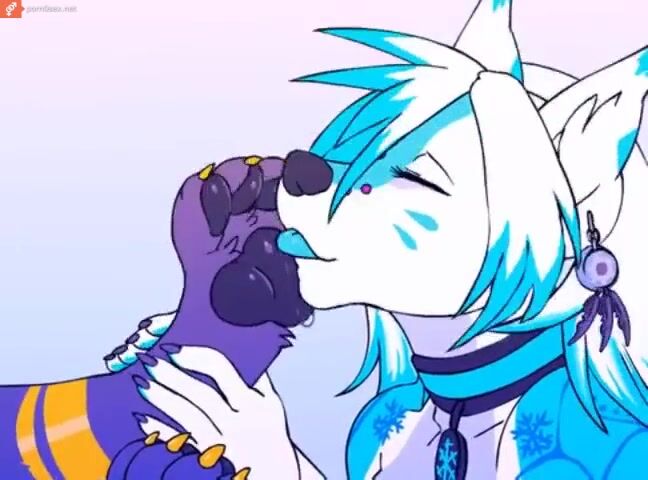 Cartoon foot fetish! Furry sweetly licks girlfriend's paws