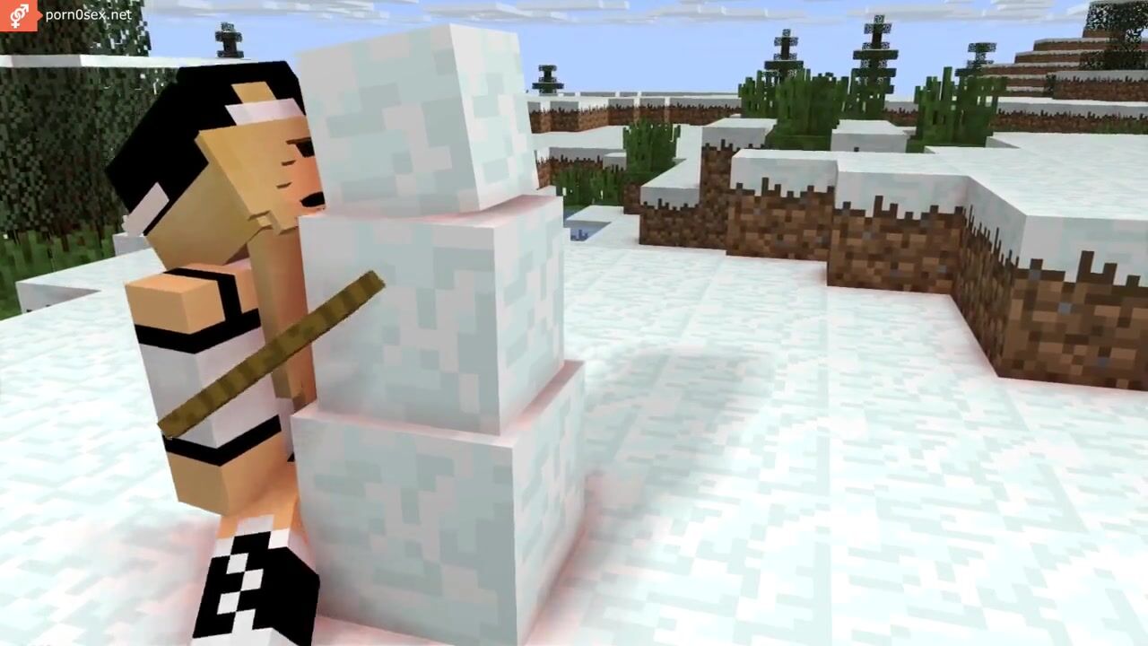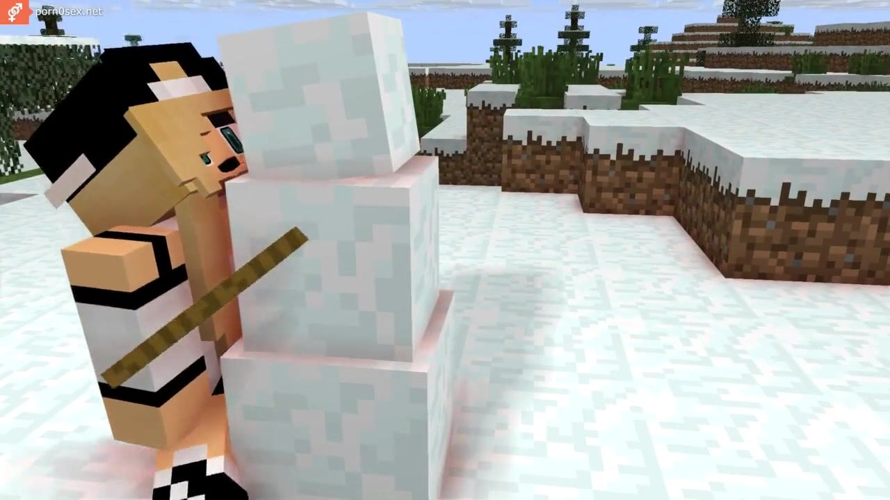 A girl from Minecraft climbed on a carrot to a Snowman
