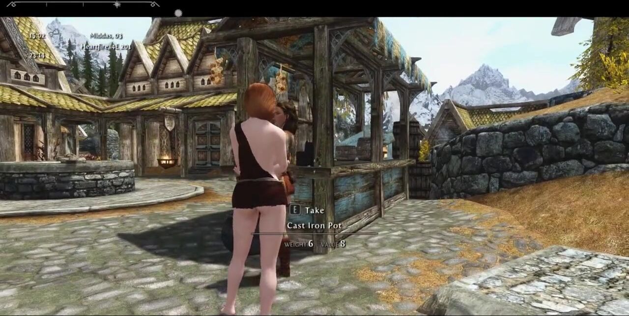 A warrior publicly rapes a red-haired girl in a bar in the porn game Skyrim