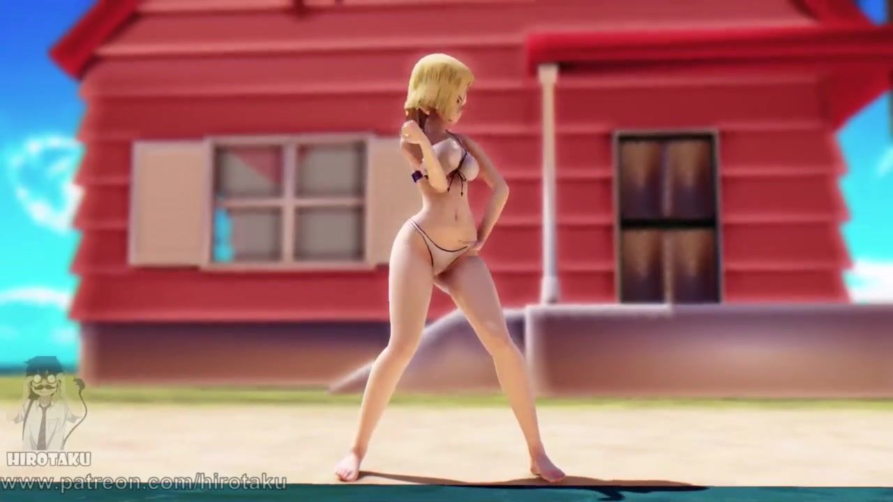 Blonde Android 18 is a very sexy girl. She knows how to seduce with her slender body. In this 3d porn you will see her hot dance. Pretty woman dancing in a swimsuit for you. Watch and enjoy!