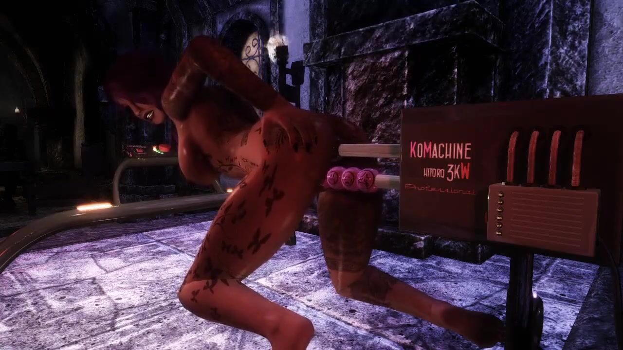 A sex machine with two dildos penetrates the holes of a beauty, 3D porn Skyrim