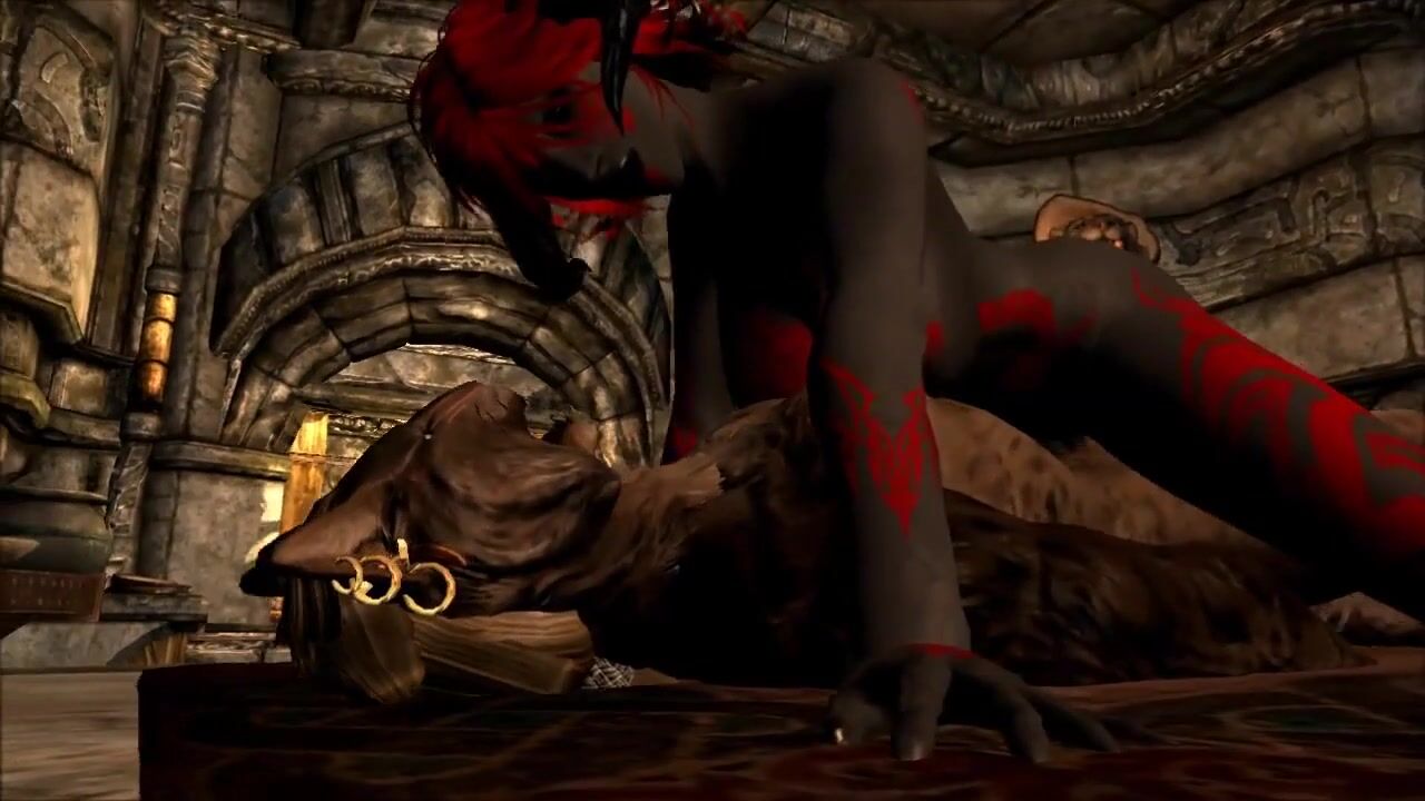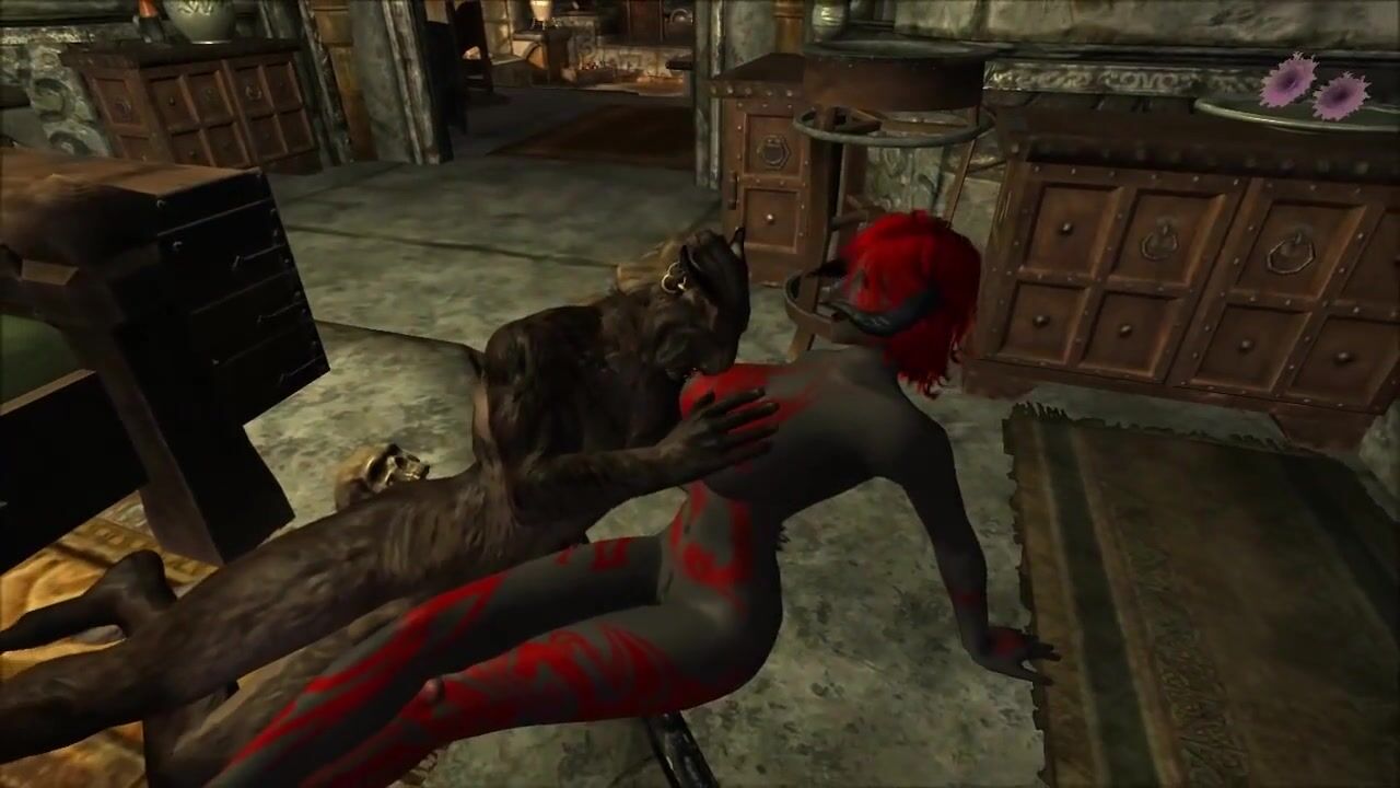 Medieval sex of a humanoid cat and a red girl, 3D porn Skyrim