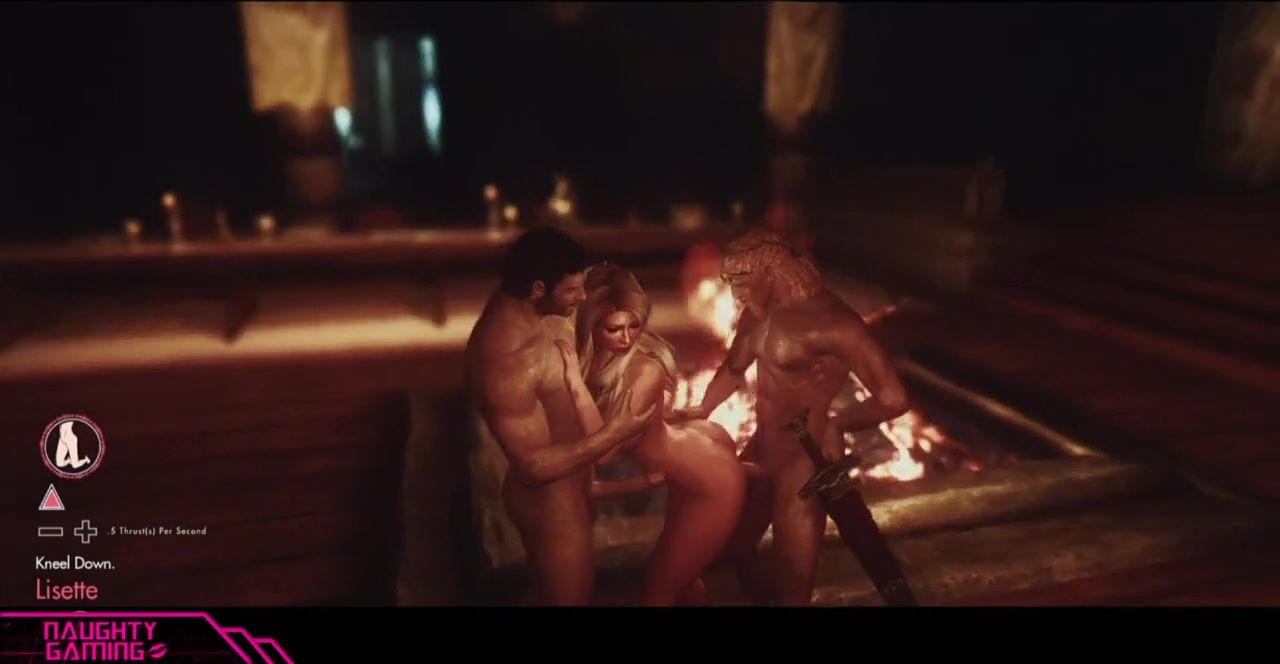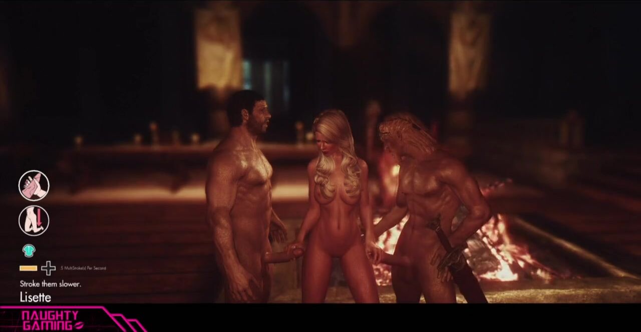 Blonde beauty sucks two big cocks of warriors, 3D porn Skyrim