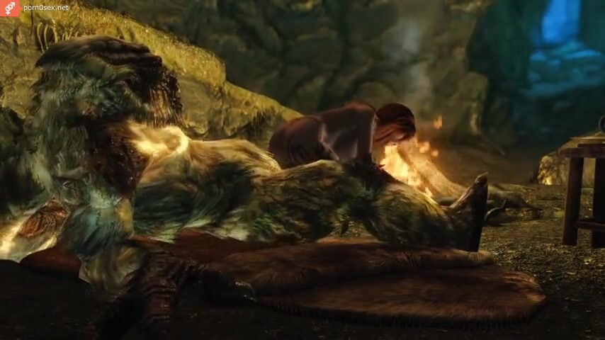 Red-haired girl gives herself to a huge troll in a cave, 3D porn Skyrim