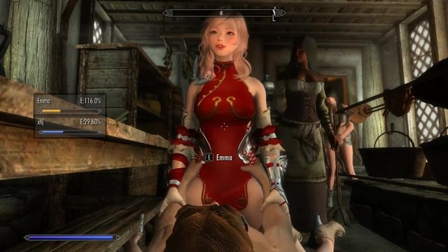 Slut Emma rides a warrior's dick in the porn game Skyrim