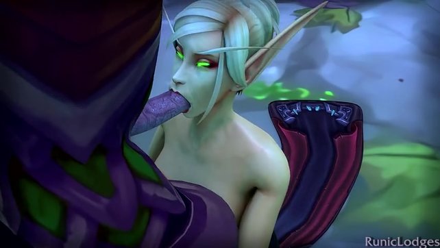 Public blowjob of a blonde elf, porn cartoon World of Warcraft