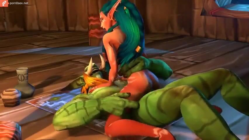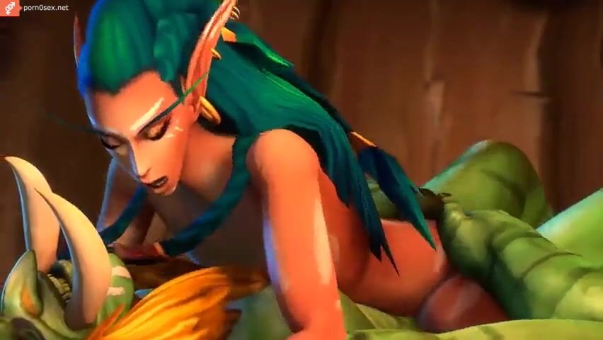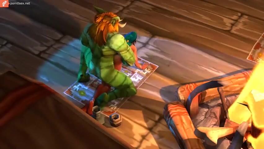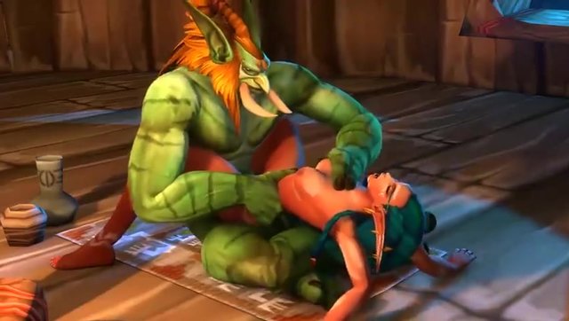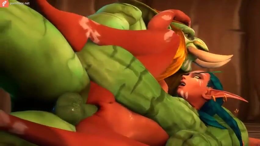 A bearded orc fucks and pours sperm on a big-eared elf, porn cartoon Warcraft