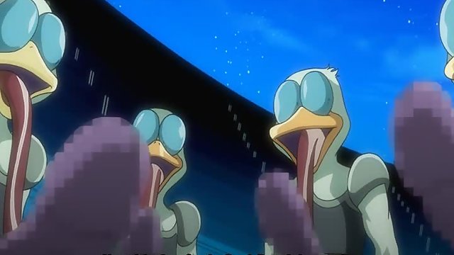 Traveling through the galaxies, a blonde with nice tits did not expect to meet with lusty aliens. But on one of the planets she was attacked by alien ducks and fucked hard in all holes.