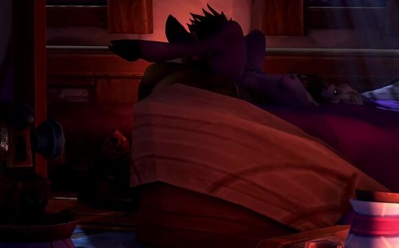 A sexy pixie from the Warcraft universe decided to make peace with her worst enemy - a huge and scary orc. She came to his lair, put on sexy lingerie and, spreading her legs wide, waited for sex with the orc.